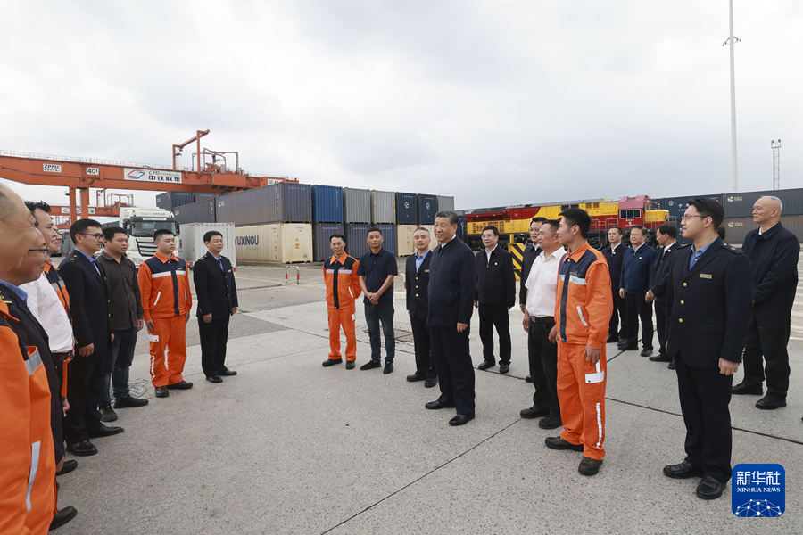 这是22日下午,习近平在重庆国际物流枢纽园区重庆铁路集装箱中心站考察。新华社记者 岳月伟 摄