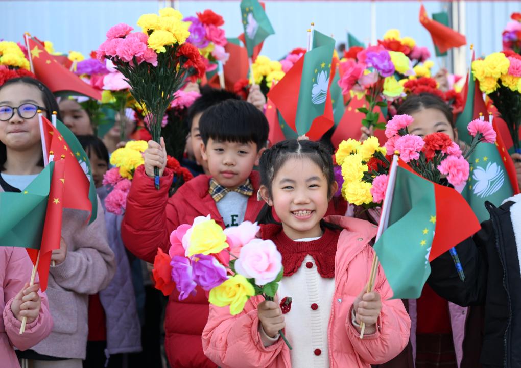 12月18日下午,中共中央总书记、国家主席、中央军委主席习近平乘专机抵达澳门,出席将于20日举行的庆祝澳门回归祖国25周年大会暨澳门特别行政区第六届政府就职典礼,并视察澳门。这是欢迎人群。新华社记者 谢环驰 摄