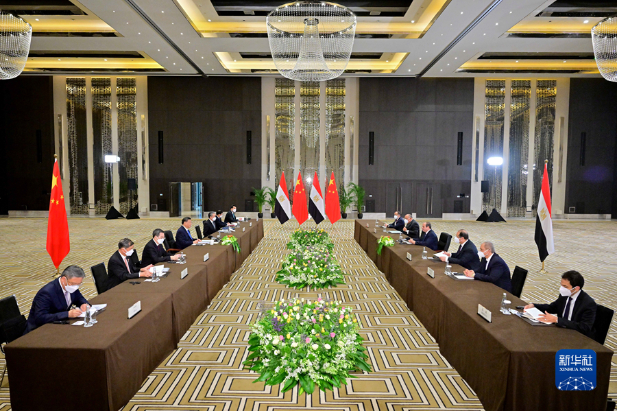 习近平指出,当前,国际和地区形势深刻复杂演变,中埃关系的战略性、全局性更加凸显。中国和埃及理念相通,利益相连,双方应该携手努力,朝着新时代构建中埃命运共同体目标,推动两国全面战略伙伴关系得到新的更大发展。