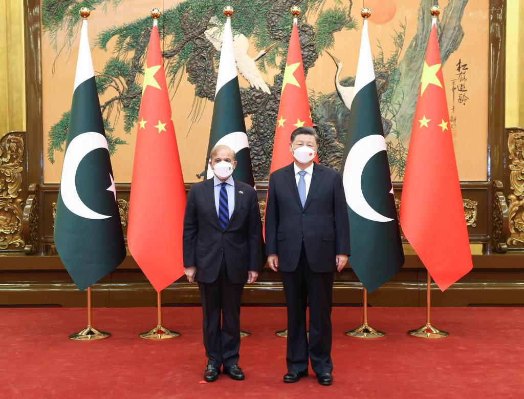 11月2日上午,国家主席习近平在北京人民大会堂会见来华进行正式访问的巴基斯坦总理夏巴兹。