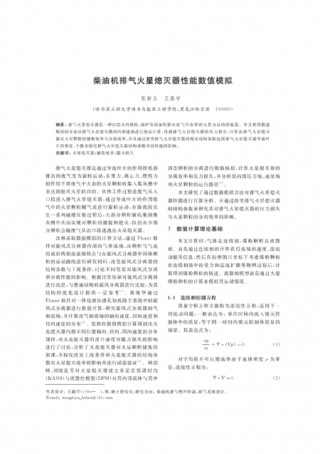 排气火星熄灭器是一种以熄灭内燃机、锅炉等设备所排出废气中夹带的火星为目的的装置。本文利用数值 模拟的方法对排气火星熄灭器的内部流场进行仿真计算,得到排气火星熄灭器的压力损失,计算出排气火星熄灭器对火星颗粒的捕集效率与分离效率,并且通过改变排气火星熄灭器的相关结构参数包括排气火星熄灭器导流叶片的角度、个数来探究排气火星熄灭器结构参数对其性能的影响。